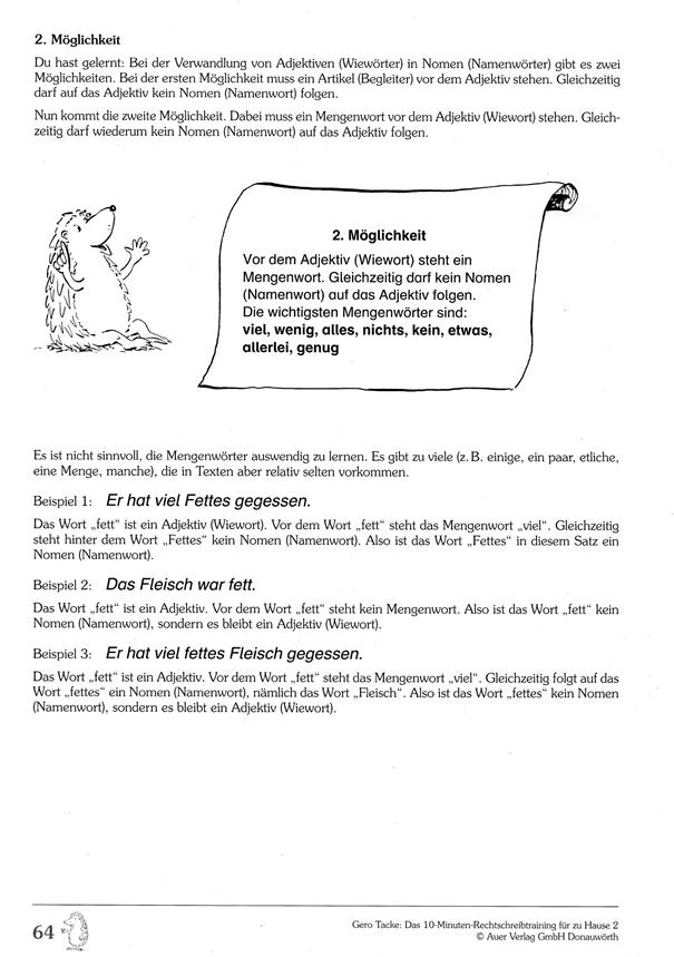Das 10-Minuten-Rechtschreibtraining Aufbaukurs Im Folgenden finden Sie einige Beispielseiten des Aufbaukurses in der Fassung für das Üben zu Hause. Eine Methode, die sehr gut geeignet ist, die Rechtschreibung zu verbessern, ist das silbierende Mitsprechen. Das Vorgehen ist von der Schulpsychologin Heide Buschmann entwickelt worden. In mehreren Studien konnte der Erfolg der Methode nachgewiesen werden. Aus diesem Grund ist das silbierende Mitsprechen in das 10-Minuten-Rechtschreibtraining aufgenommen worden. Das Training
